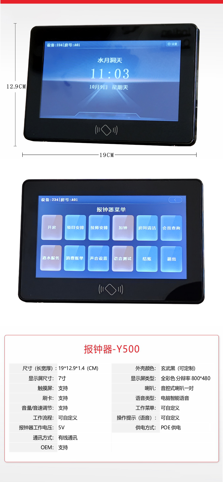 高保真雙磁喇叭,正面發聲、催鐘、報鐘、真人呼叫提醒